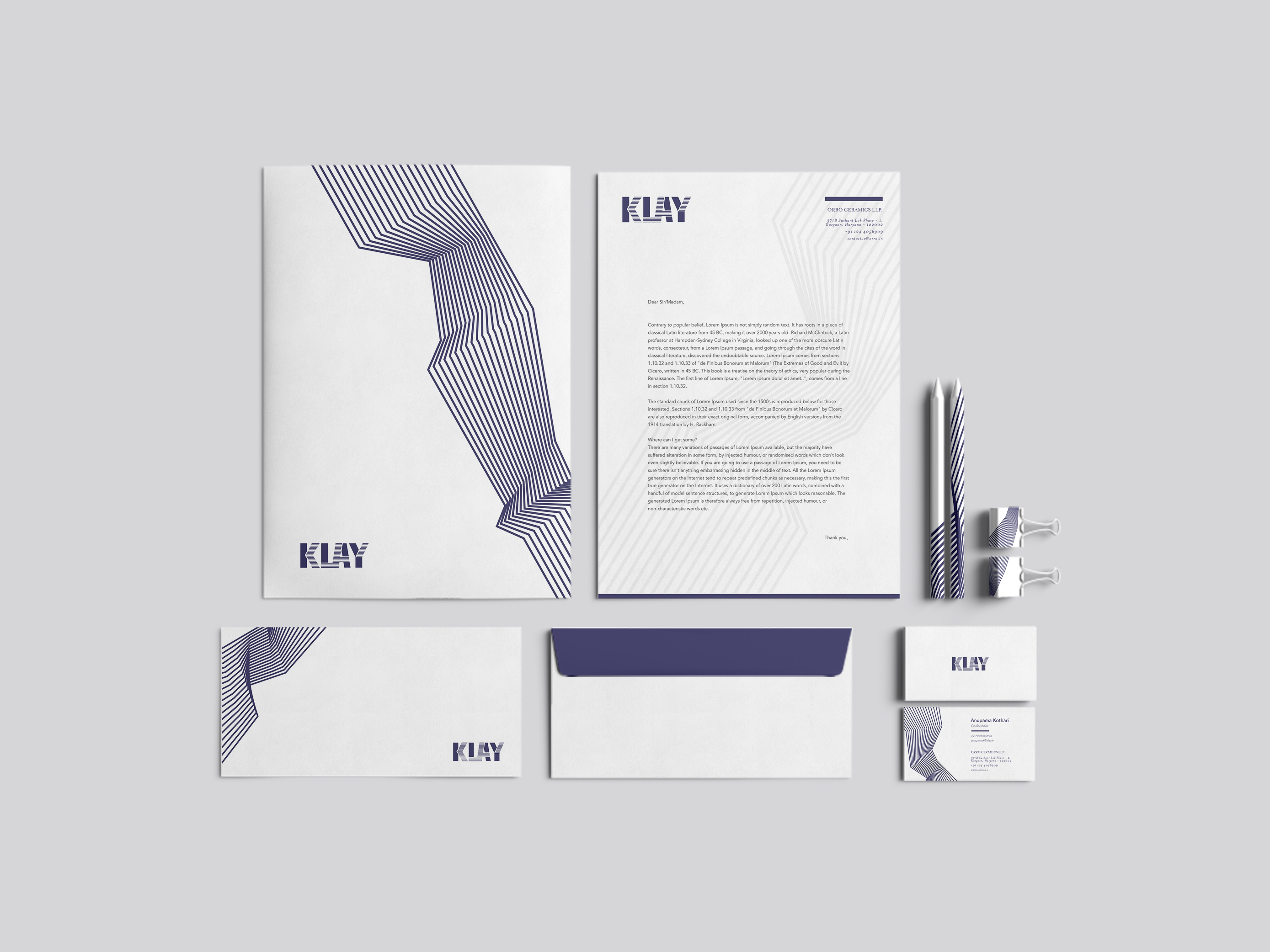 Brand Identity done for Klay - an interior design and tiling company based out of New Delhi in India. Later I also got to work on the storefront, interiors of the store, and the reception desk [made out of the form of the logo].